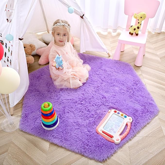 - Super Soft Rug: Our fluffy hexagon carpets are made with high quality materials and advanced manufacturing processes to bring you unparalleled comfort. The feather-soft plush surface makes the carpet as comfortable as a cloud, and your kids can play happily in the room
