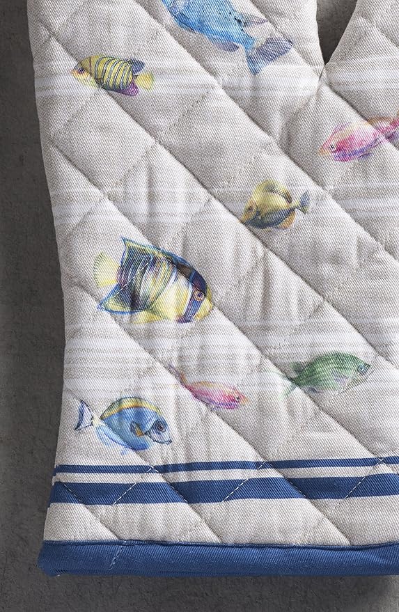 Maison d' Hermine Oven Gloves 100% Cotton Oven Mitt 7" x 13" with Loop Heat Resistant, BBQ, Cooking Gloves, Baking, Grilling, Kitchen, Handling Hot Pans Spring/Summer (Pack of 1, Poisson)