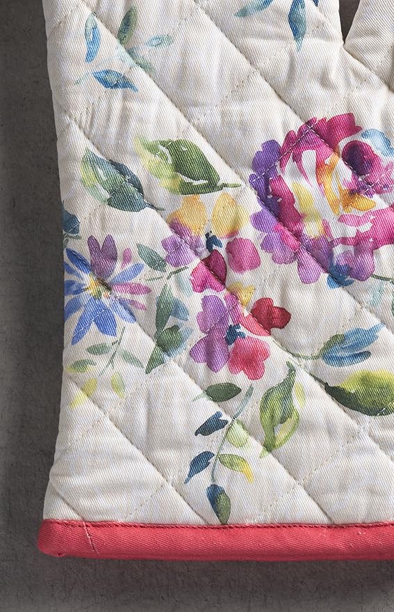 Maison d' Hermine Oven Gloves 100% Cotton Oven Mitt 7" x 13" with Loop Heat Resistant, BBQ, Cooking Gloves, Baking, Grilling, Kitchen, Handling Hot Pans Spring/Summer (Pack of 1, Rose Garden)