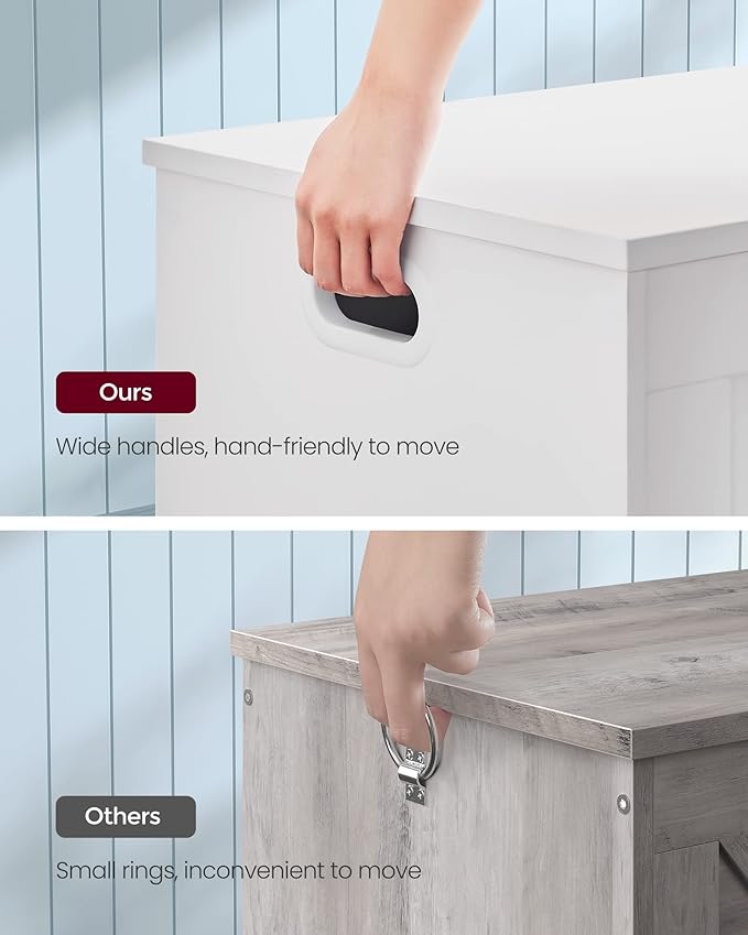 VASAGLE Storage Chest, 29.9 Inches Width Storage Bench, Entryway Bench with 2 Safety Hinges, Shoe Bench, Farmhouse Style, for Entryway, Bedroom, Living Room, Cloud White ULHS11WT