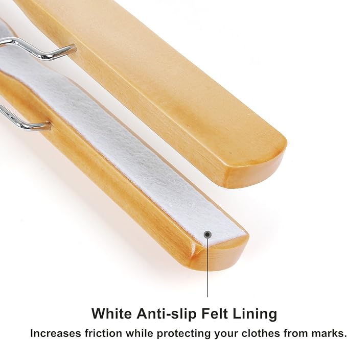 - 【NATURAL MATERIAL】 Crafted of premium wood, hand polished and a natural finish, these pants hangers are stylish and attractive when paired with either suit pants, trousers, slacks, jeans or skirts, and will last for years to come