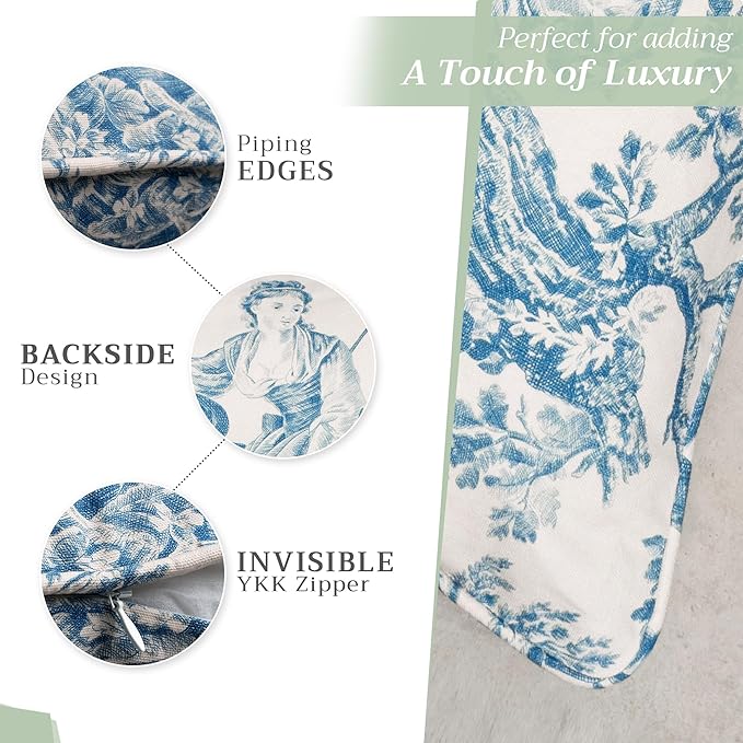 - Timeless toile design: Featuring classic Toile motifs, each cover showcases beautifully detailed prints. These vintage French cushion covers blend elegance and artistry, ideal for traditional or farmhouse-style décor