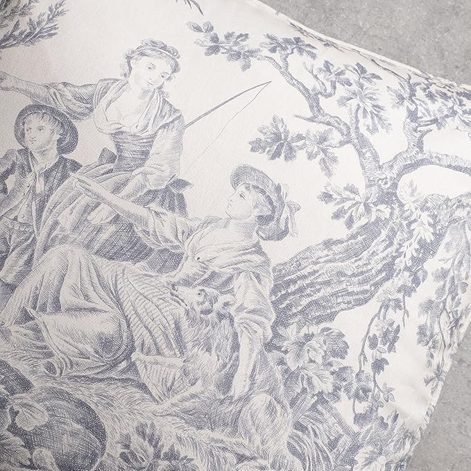 - Package includes: Includes 1 Toile throw pillow cover sized 20"x20". Cushion insert not included. Designed in Europe and Made in India, this elegant cotton cover adds vintage charm and sophistication to your home décor