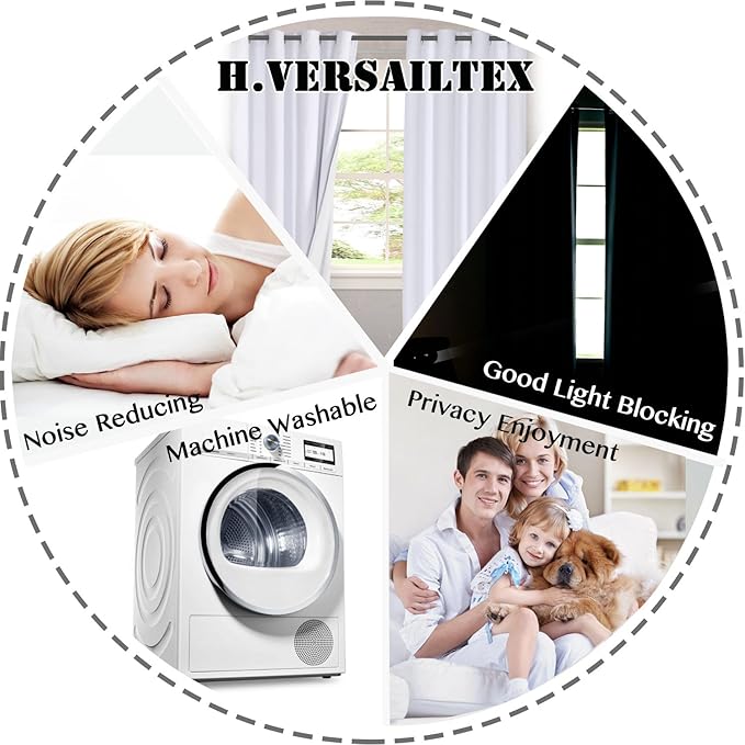 - WARM REMINDER: Shopping with H.VERSAILTEX linen look 100% blackout curtains with pure white flocking backing, add decent tone to your room aesthetics. While most similar items in the market are with dull greyish backing. So check and compare it carefully before ordering. Machine washable in cold water, use only non-chlorine bleach when needed, tumble dry low and warm iron as needed