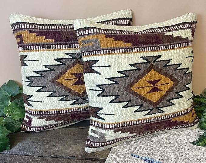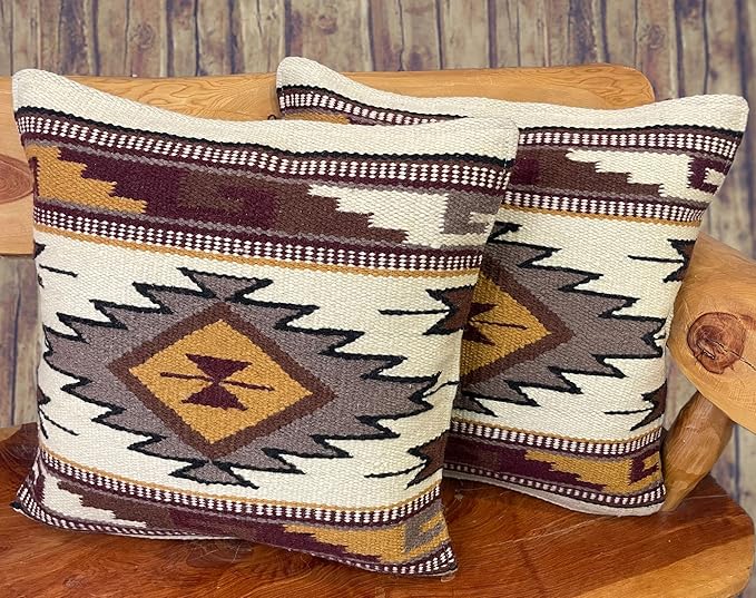 Mission Del Rey Southwestern Wool Throw Pillow Covers 18x18 - (Pair) 2 Hand Woven Western Pattern for Native American Style and Rustic Cabin Decor (Cheyenne)