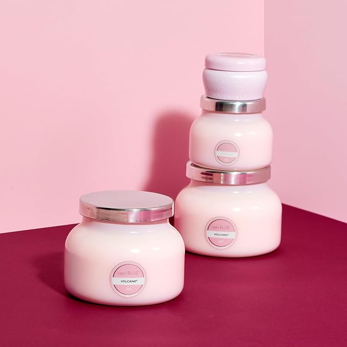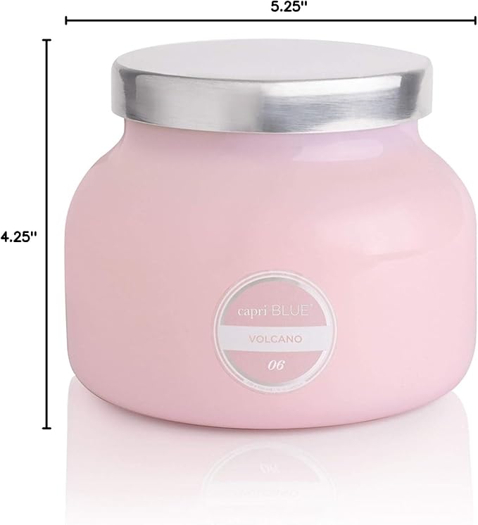 - Capri Blue Signature Jar Candles (19 oz) - Millennial Pink = The New Neutral. This Bubblegum color is timeless, yet in the now, and the worlds of fashion and product design are swooning over it! This gorgeous color, mixed with the forever iconic Volcano fragrance, is truly magical. This Capri Blue Volcano candle has a burn time of up to 85 hours.