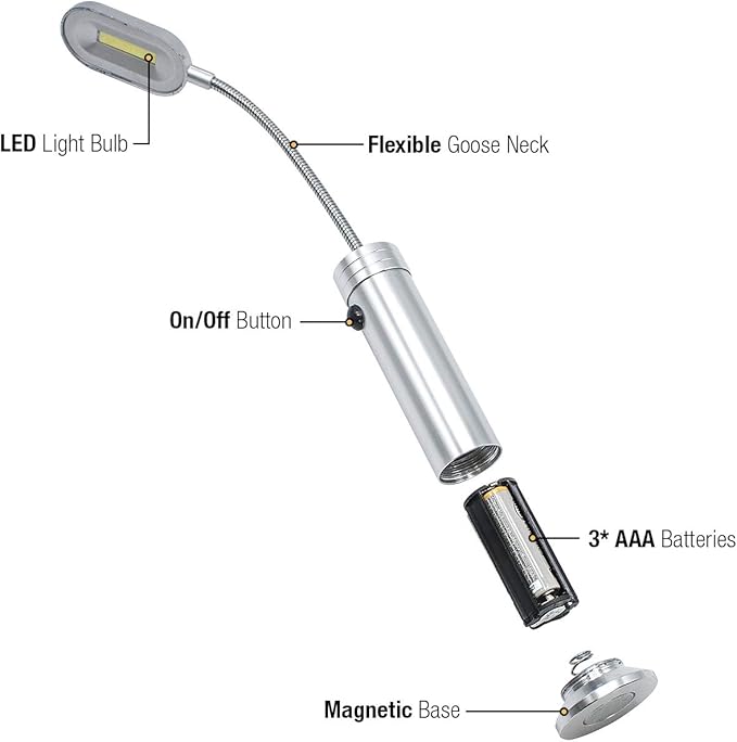 - FLEXIBLE GOOSENECK — Bendable 4-Inch goose-neck adjusts 360° to illuminate any task — Simply twist or bend gooseneck to desired angle for lighting indoor/outdoor activities