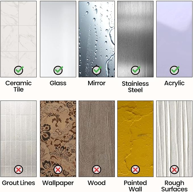 - [Warm Tips] The suction cups only stick to smooth, non-porous surface areas like metal, glass, tile, stainless steel, and acrylic. They don't work on uneven tiles, texture plates, unfinished marble, wallpaper, painted walls and many more. We offer resolution for lifetime. If a TAILI product didn't meet your needs, just let us know, and we'll help you figure it out in 24 hours.