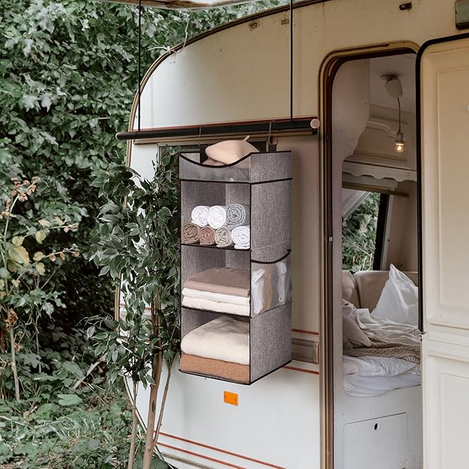 - Hanging closet shelf for versatile storage of sweaters, knitwear, handbags, scarves, shirts, pants, hats, shoes, dorm essentials and more in the closets, trailers, college dorm, or RVs.