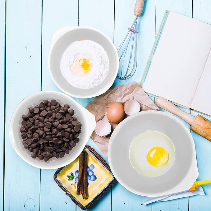 - NESTED MIXING BOWLS – When not in use, just nest the 3 bowls together for easy storage and organization. The nesting design provides a space-saving convenience to free up extra room in the cupboard for other kitchen tools.