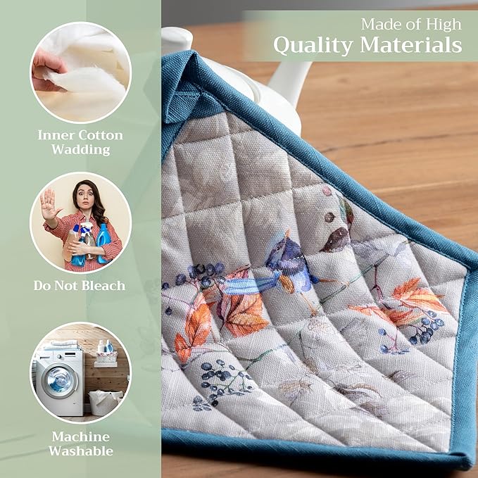 - Unique Design: Inspired by Europe, featuring exquisite watercolor artwork where each design embodies over 120 hours of hand-painted artistry. The rich hues and fine detailing make this Pot Holders perfect for holiday tables, fall decor, Thanksgiving decorations, or festive Christmas decorations