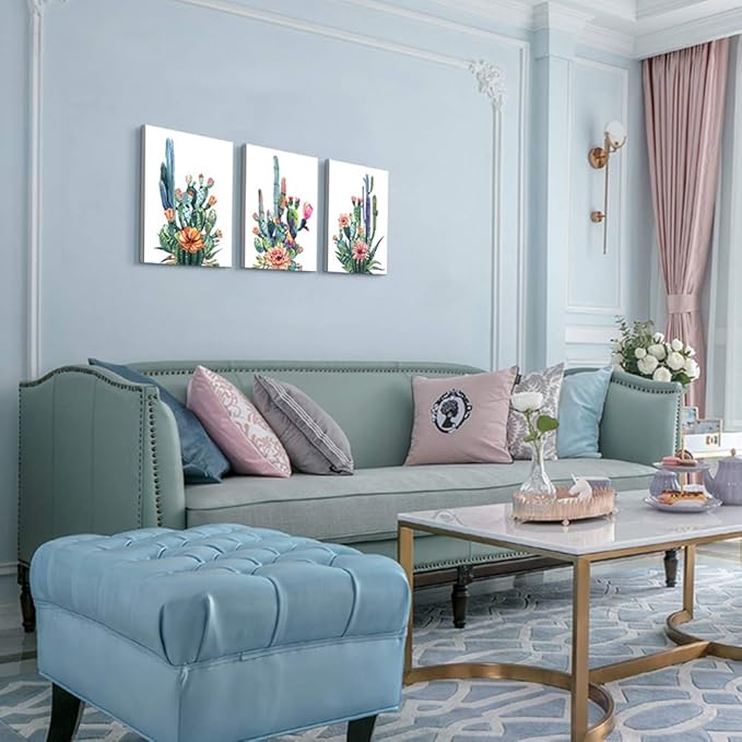 Wall Art for living room Canvas Prints Artwork bathroom Wall Decor Simple Life Green plants cactus Picture Watercolor painting 3 Pieces Framed bedroom wall decorations Office Works Home Decoration