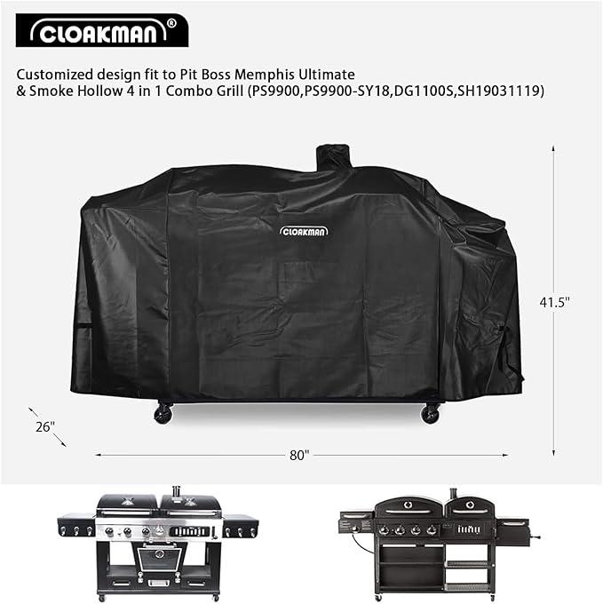 - Grill cover for Pit Boss Memphis Ultimate combo grill and Smoke Hollow 4 in 1 Combo grill (PS9900/PS9900-SY18/DG1100S/SH19031119) GC7000; Dimensions:(L)80''x (D)26''x(H)41.5'' (excluding smoke stack)
