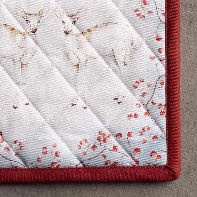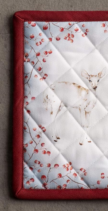 Maison d' Hermine 100% Cotton Oven Mitt & Pot Holder Set (7.5"x13" & 8"x8") Heat Resistant BBQ Cooking Gloves with Loop for Thanksgiving Christmas Decorations Handling Hot Pans (Fairy Tale Forest)