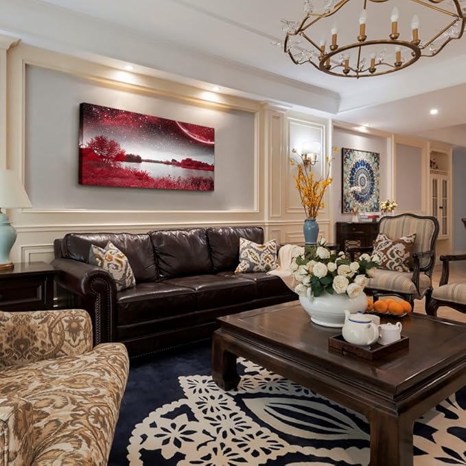 Print Artwork Wall Art Decor Poster for living room Red tree moon starry sky red landscape painting bathroom Wall Art for bedroom Canvas Prints Picture Works Ready to Hang Office Home decorations