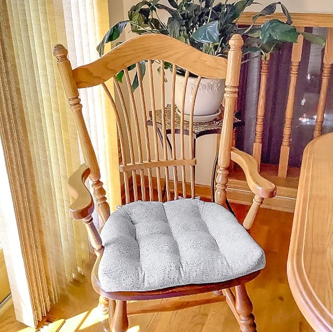 Barnett Home Decor Tibet Grey Dining Chair Pad with Ties - Medium Size 18 Chair Cushion - Latex Foam Fill - Machine Washable, 100% Cotton, Made in USA (Gray Mandalas)