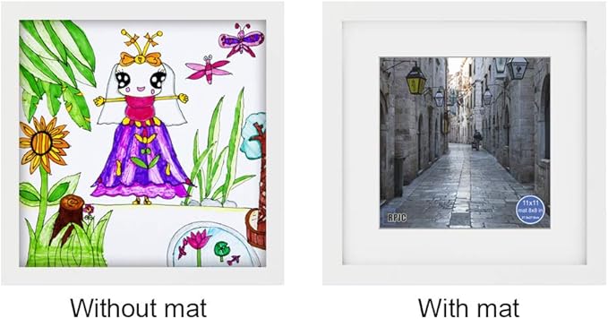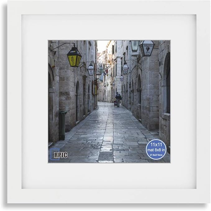 RPJC 11x11 inch Picture Frame Made of Solid Wood and High Definition Glass Display Pictures 8x8 with Mat or 11x11 Without Mat for Wall Mounting Photo Frame White
