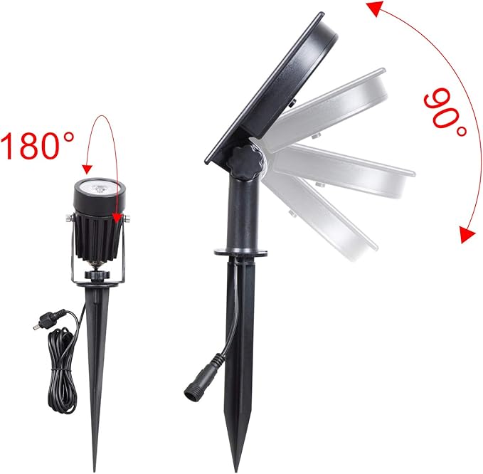 - 【Wide Application】 -- Waterproof rating IP65, don't worry about rain, snow and dust. The solar spotlight perfect for garden, patio, driveway, stairs, pool area, etc..