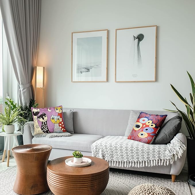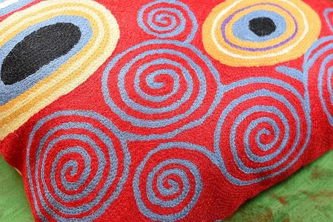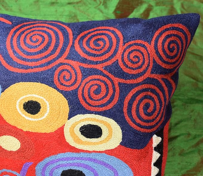 Klimt Red Throw Pillow Cover Reds Navy Modern Accent Pillowcase Decorative Abstract Throw Pillows Modern Boho Pillow Farmhouse Chair Cushions Hand Embroidered Sofa Cushion Wool Size 18x18
