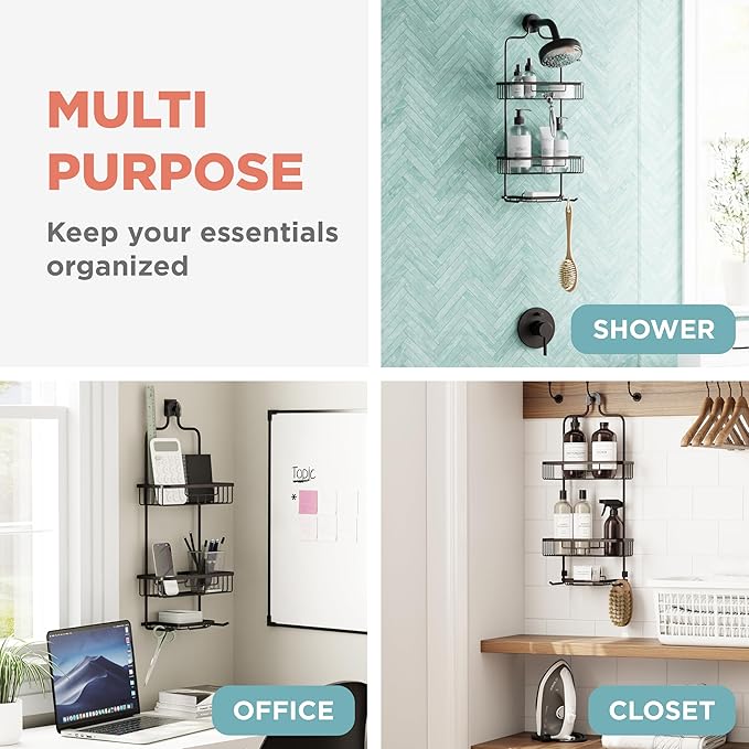- Hanging Shower Caddy: The Zenna Home hanging shower caddy includes 2 spacious shelves, a soap dish, hooks and holders for razors, washcloths, and more. Perfect for organizing essentials in your bathroom.