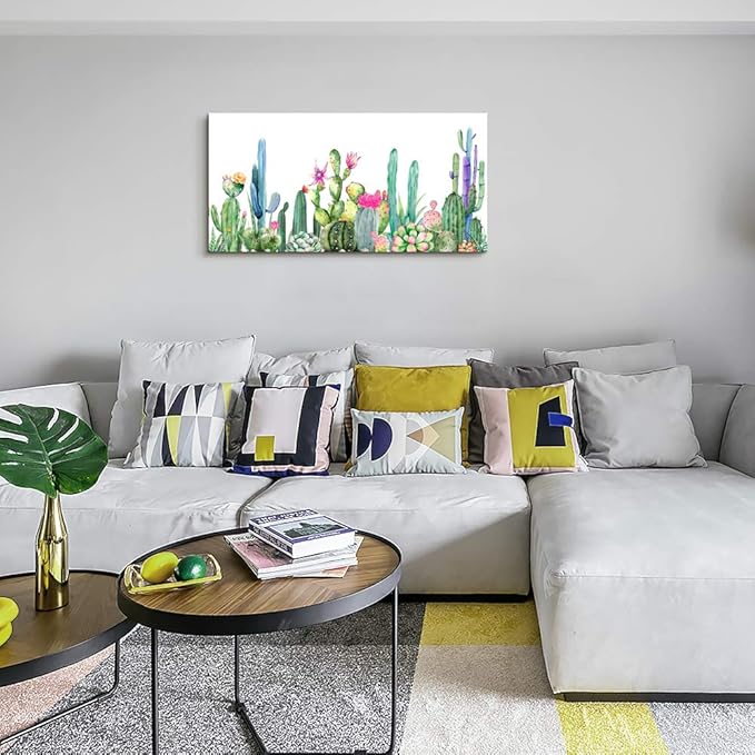 Wall Art for living room Canvas Prints Artwork bathroom Wall Decor Simple Life Green plants cactus Picture Watercolor painting Framed bedroom wall decorations Office posters Works Home Decoration