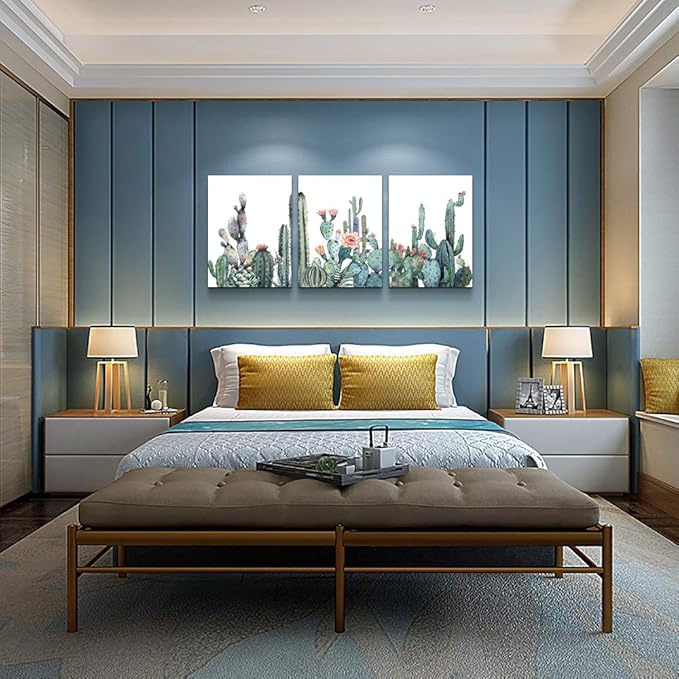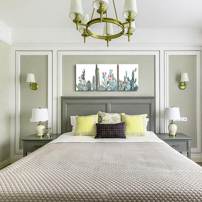 Canvas Wall Art for bedroom living room Canvas Prints Artwork bathroom Wall Decor Green plants cactus flower watercolor painting 16" x 24" 3 Pieces modern Framed Ready to hang Office Home Decoration