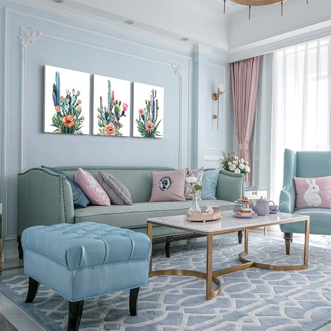 Wall Art for living room Canvas Prints Artwork bathroom Wall Decor Simple Life Green plants cactus Picture Watercolor painting 3 Pieces kitchen bedroom wall decorations Office Works Home Decoration