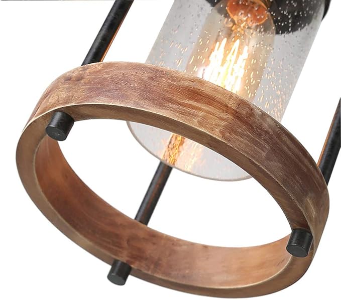 - Island Pendant Lighting:Giluta simple pendant light made of premium wood and durable black finish metal frame, clear glass shade effectively realize the spotlight effect to create a romantic and warm atmosphere with no dazzling.