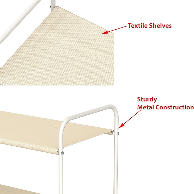 - Soft, sturdy and breathable fabric shelves keep clothes organized and accessible.