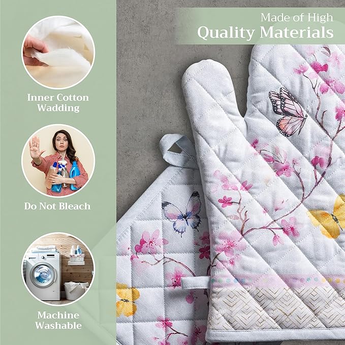 - Premium Quality: Crafted from quilted 100% cotton, this heat resistant oven mitt and pot holder set offers comfort, flexibility, and protection from hot cookware. Ideal cotton oven mitts for daily kitchen use and cooking safety