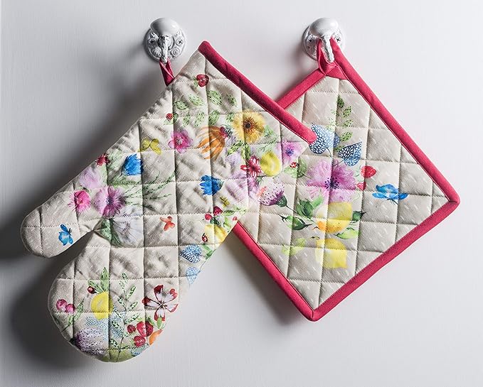 - Artistic style: Add charm to your kitchen with our oven mitt pot holder set featuring watercolor designs inspired by traditional European motifs. Stylish and functional kitchen accessories for every home cook or gift occasion.