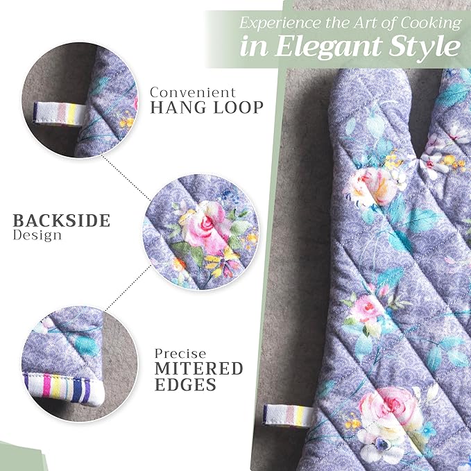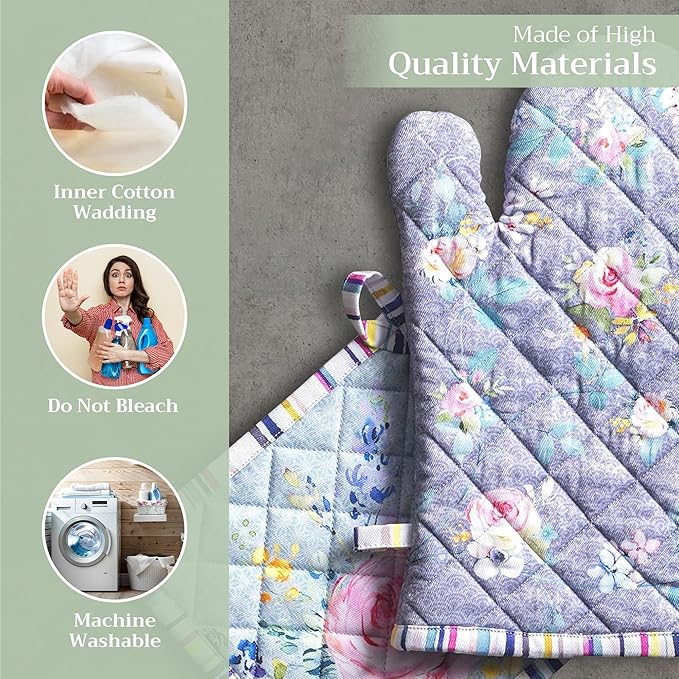 - Premium Quality: Crafted from quilted 100% cotton, this heat resistant oven mitt and pot holder set offers comfort, flexibility, and protection from hot cookware. Ideal cotton oven mitts for daily kitchen use and cooking safety