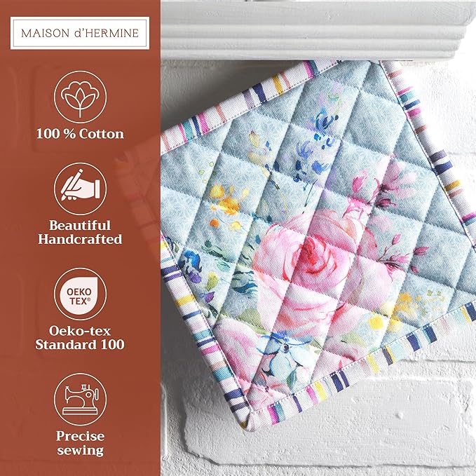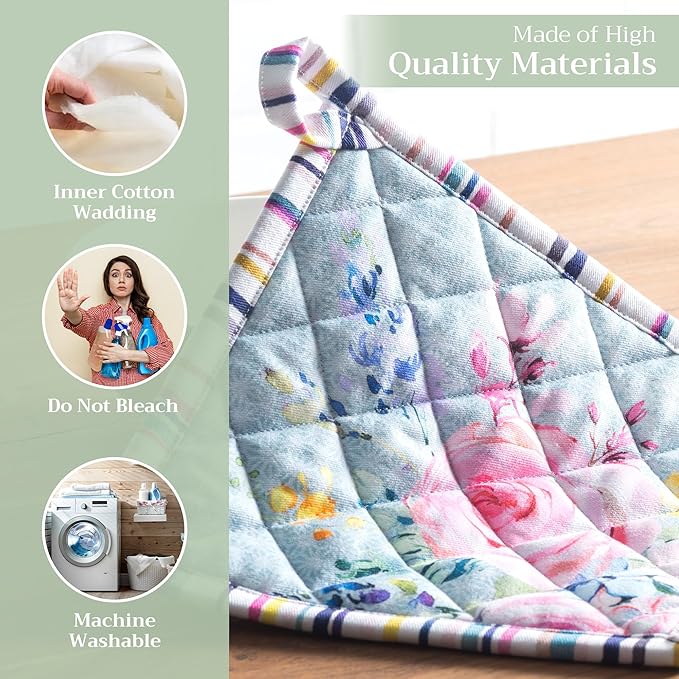 • 100% Quilted cotton: Made from premium quilted cotton, our pot holder ensures safe handling of hot pans or dishes. The soft, durable build provides excellent heat resistance and grip—perfect for everyday cooking and baking needs