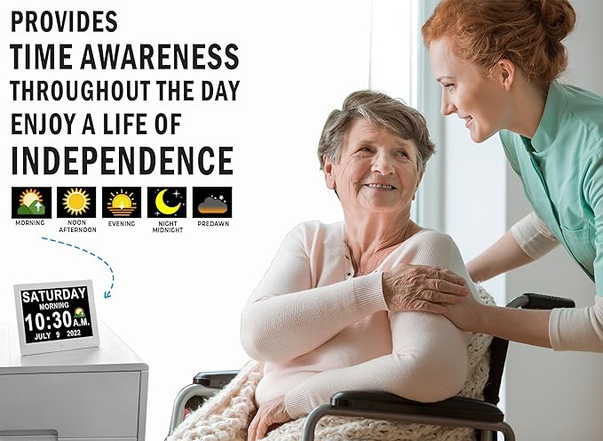 - โค ๐๐๐๐ผ๐บ๐ฎ๐๐ถ๐ฐ ๐ง๐ถ๐บ๐ฒ ๐ฅ๐ฒ๐๐ฒ๐ ๐ฎ๐ป๐ฑ ๐ณ ๐๐๐ฐ๐น๐ฒ๐: Our Clock has unique memory feature which can reset time automatically after power outage, no need to adjust manually! 7 cycles include: 4:00 am - 11:59 am (MORNING), 12:00 pm - 8:59 pm (NOON, AFTERNOON, EVENING), 9:00 pm - 1:59 am(NIGHT, MIDNIGHT), 2:00 am - 3:59 am(PREDAWN).By displaying PREDAWN after midnight helps keep the seniors in bed before starting the day