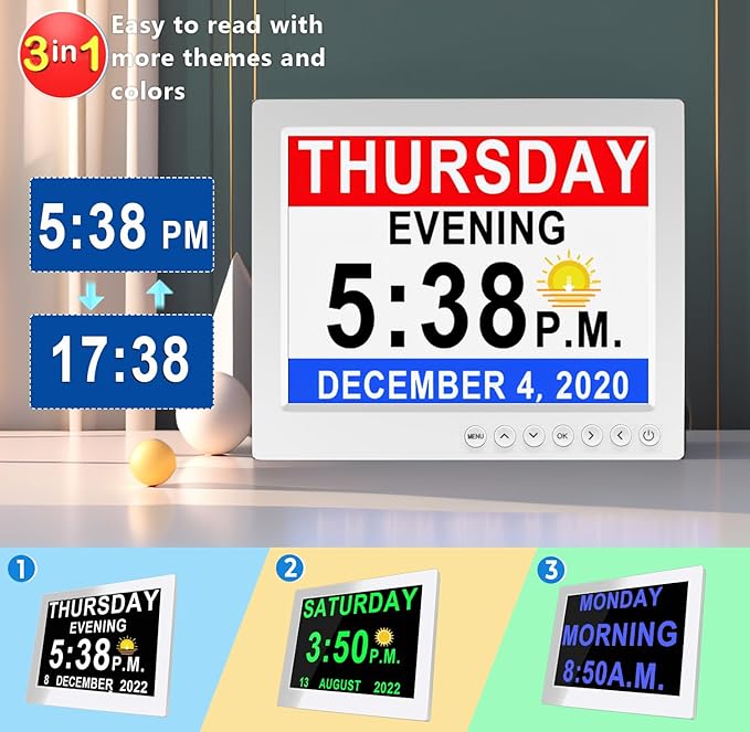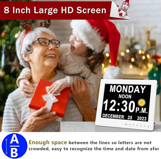 - โค ๐๐ ๐๐ฟ๐ฎ ๐๐ฎ๐ฟ๐ด๐ฒ ๐๐ถ๐๐ต ๐๐ฐ๐ฐ๐๐ฟ๐ฎ๐๐ฒ ๐ง๐ถ๐บ๐ฒ๐ธ๐ฒ๐ฒ๐ฝ๐ถ๐ป๐ด: Original Large 8 inch 1280x800P HD digital clock Features accurate date and time display eye-friendly screen, much more visible than regular LED clocks or atomic clocks ! It also display MORNING, NOON, AFTERNOON, EVENING, NIGHT, MIDNIGHT, BEFORE DAWN with bright Sunโ๏ธMoon๐ visuals. And exclusively: Our clock comes with both ๐ฟ๐ฒ๐บ๐ผ๐๐ฒ ๐ฎ๐ป๐ฑ ๐๐๐ฎ๐ป๐ฑ๐ฎ๐ฟ๐ฑ ๐ฎ๐ฑ๐ฎ๐ฝ๐๐ผ๐ฟ ๐ถ๐ป๐ฐ๐น๐๐ฑ๐ฒ๐ฑ, no seperate purchase, eliminating the risk of using incorrect adaptors and helping save your time to operate.