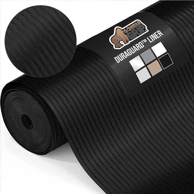 GORILLA GRIP DuraGuard Shelf Liner, Non-Adhesive Cabinet Liners for Kitchen Drawers, Shelves, Refrigerator, Pantry Storage, Bathroom Closet, Durable Waterproof BPA Free Ribbed Plastic, 12x20 Jet Black