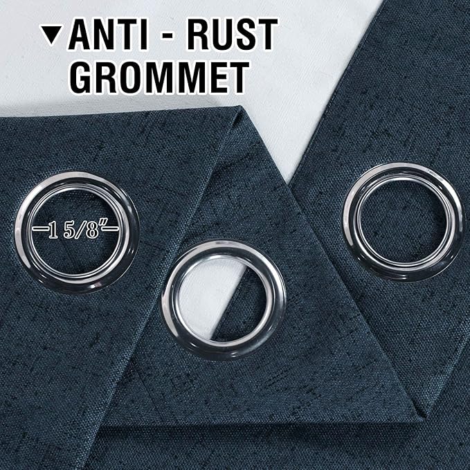 - PAIR SOLD: 2 panels in package. Each panel measures 52"W x 45"L| Pair measures 104"W x 45"L. Thread trimmed and wrinkle free, panel is constructed with 8 anti rust grommets which fit well up to 1 1/2 inches curtain rods
