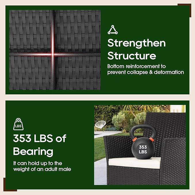 - SPACE-SAVING & VERSATILE: This patio conversation set fits small patios, balconies, and gardens. Compact and practical, this design saves space while providing easy storage for outdoor essentials.