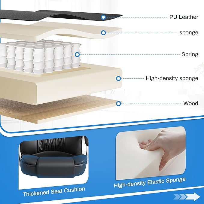 - High Quality: The backrest, cushion and armrest are filled with selected thick sponges, and the surface is made of smooth and durable PU leather. It is comfortable to work, play computer and watch TV series. Gas lift and seat are tested and laboratory certified to ensure safety and durability.
