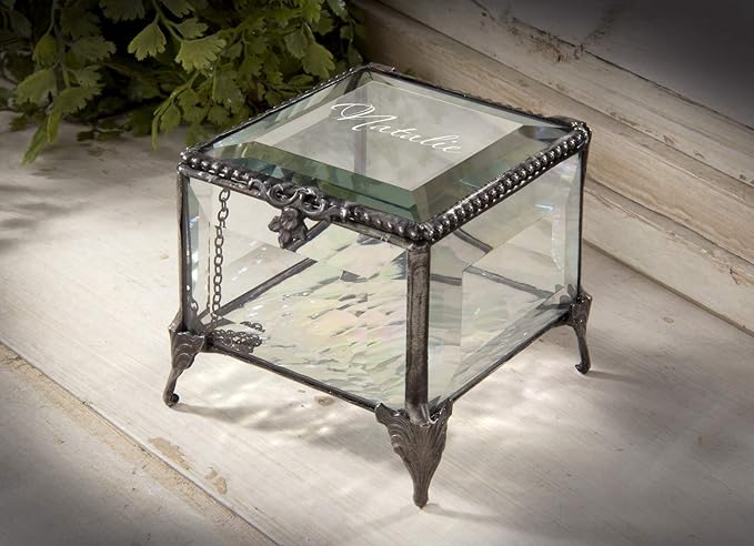 Personalized Clear Beveled Glass Box Decorative Vanity Display Case Storage Jewelry Organizer Keepsake Gift for Her Girl Women Vintage Decor J Devlin Ellen Box 326 EB245