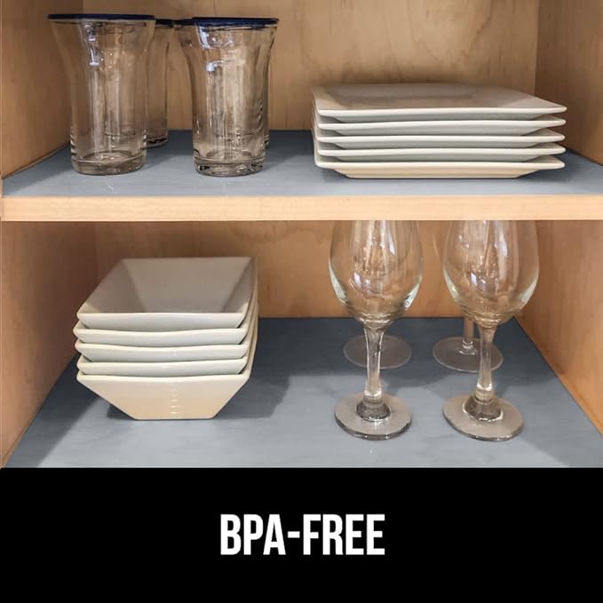 - STRONG GRIP: the Gorilla Grip DuraGuard shelf liner is a durable non adhesive liner designed to stay firmly in place on shelves, drawers and cabinets; will also help keep your items in place; they help to prevent dishware and other fragile items from shifting; designed to help reduce slipping and bunching in your drawers and cabinets