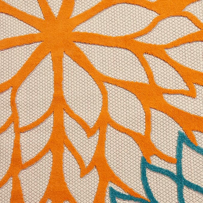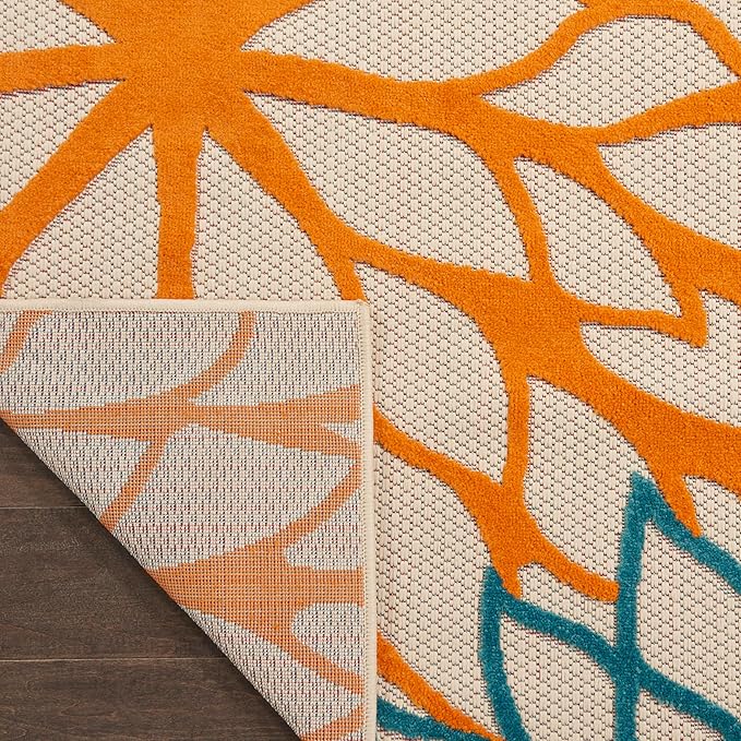 - Floral indoor/outdoor rug brings a cool tropical vibe to your home