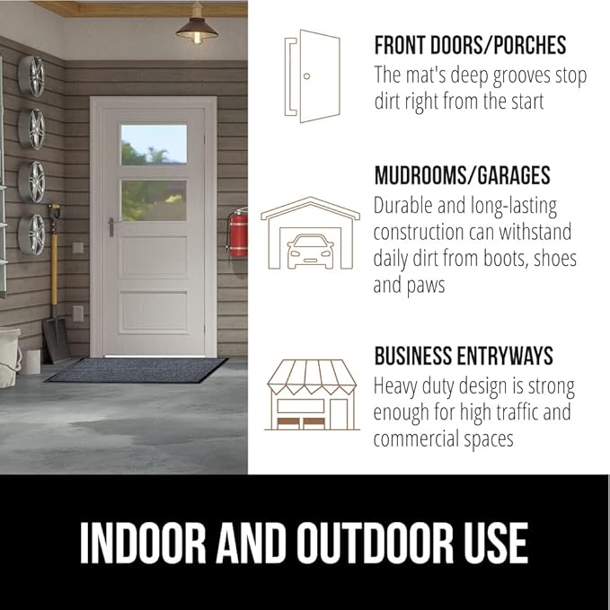 - BUILT TOUGH FOR HIGH TRAFFIC: the Gorilla Grip Traffic Guard doormat is ultra strong and built tough to withstand high foot traffic; constructed with a high quality textured PVC backing and raised fabric topside to help scrape off dirt and debris; thick and plush topside is gentle on bare feet, but durable for boots
