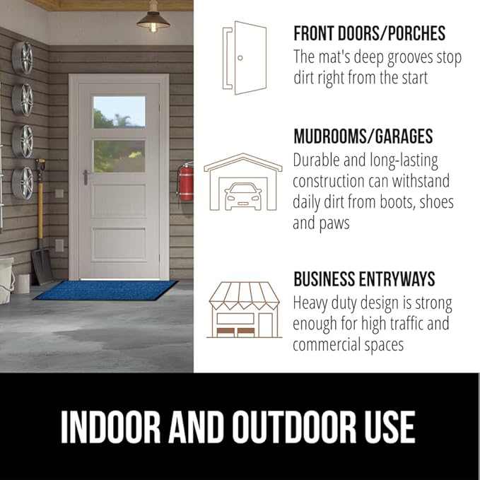 GORILLA GRIP Traffic Guard Door Mat, Heavy Duty Welcome Mats, Commercial Office Space Doormat, Waterproof, Fade Resistant, Strong Rubber Backing, Low Profile, Shoe and Boot Scraper, 35x23, Blue
