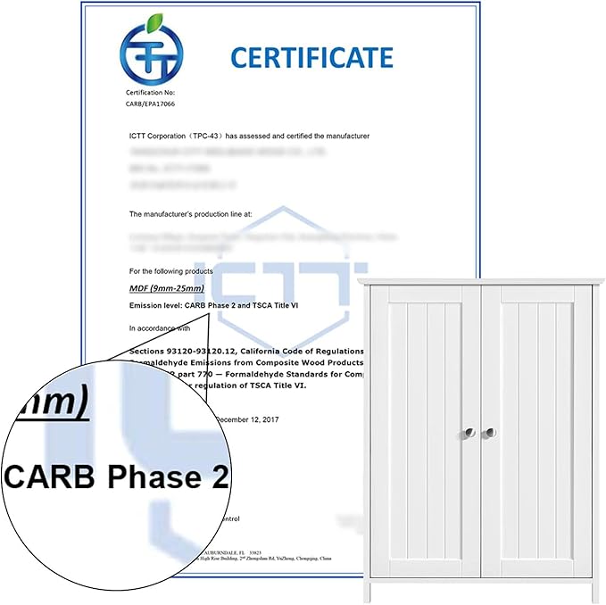 - Quality Main Materials: This free-standing cabinet is constructed of premium P2 MDF boards, liquid-resistant painted veneer, stainless steel door knobs and metal fittings. Please rest assured that it contains no harmful substances and can last for years in terms of regular use