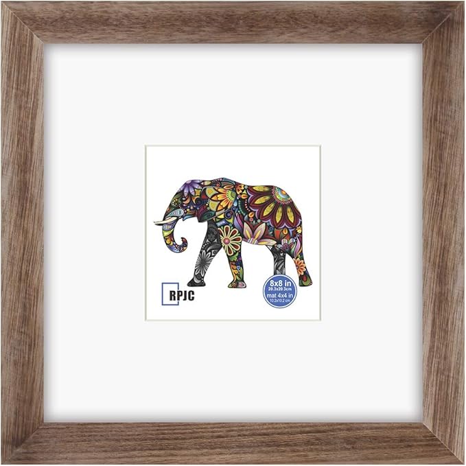 - Size:Fits 8 by 8 inchprints without mat or 4 by 4 with Mat, Actual Frame size (finished size) 9.3"x9.3"x3/4".