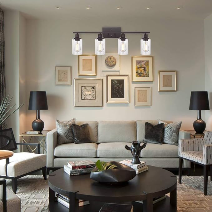 MELUCEE 4 Lights Wall Sconce Lighting Oil Rubbed Bronze Finished with Clear Glass, Bathroom Vanity Light Fixtures Wall Lights Bedroom Porch Kitchen Living Room (Patent No.: US D963914 S)
