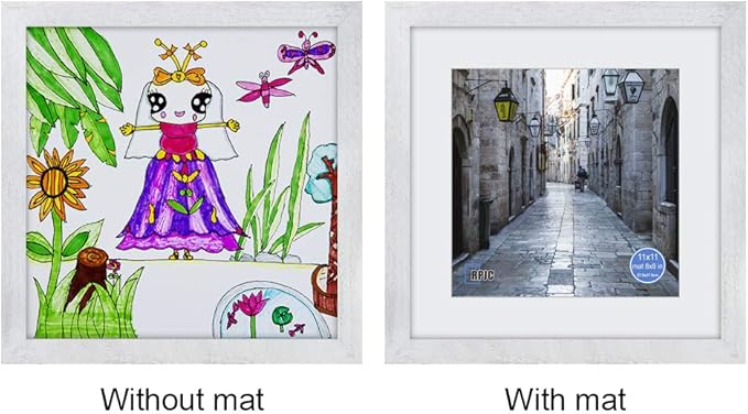 11x11 Inch Picture Frame Made of Solid Wood and High Definition Glass Display Pictures 8x8 with Mat or 11x11 Without Mat for Wall Mounting Photo Frame Rustic White
