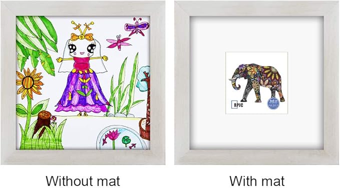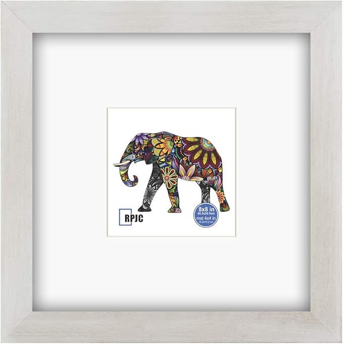 RPJC 8x8 Soild Wood Picture Frame with High Definition Glass Display Pictures 4x4 with Mat or 8x8 Without Mat for Wall Mounting Hanging Photo Frame Rustic White