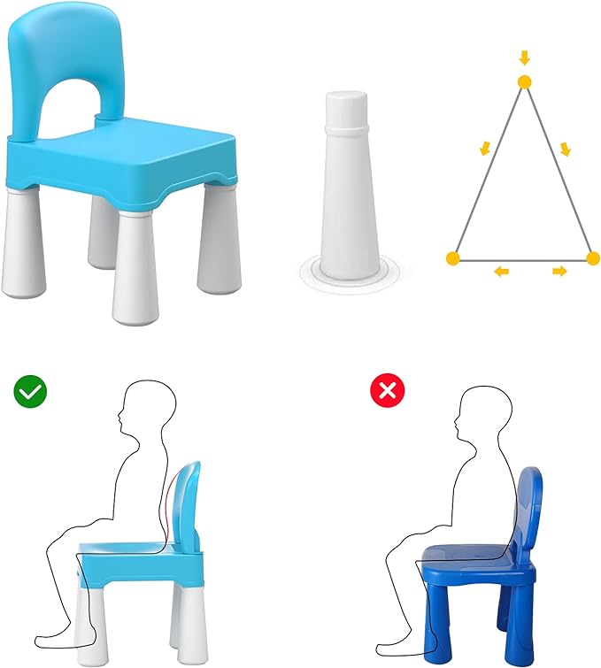 - Stable & Durable Construction: Constructed with a curved backrest to makes the child sit more comfortable. The chair legs are triangular in shape to help reduce tipping and increase safety.